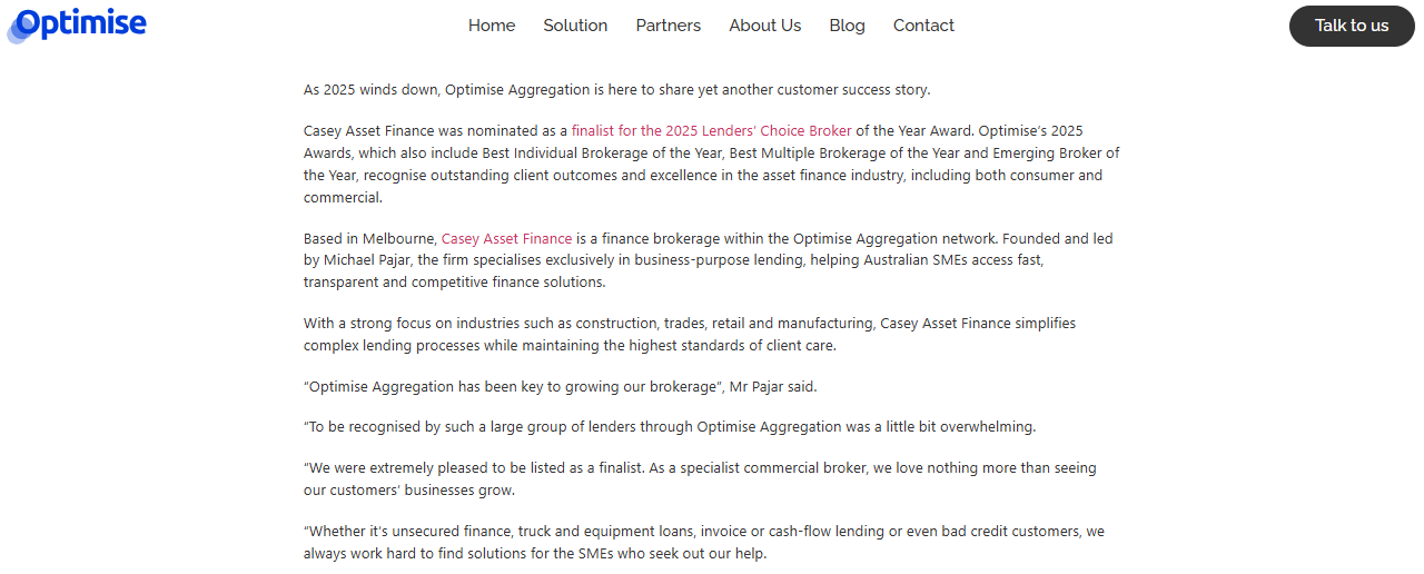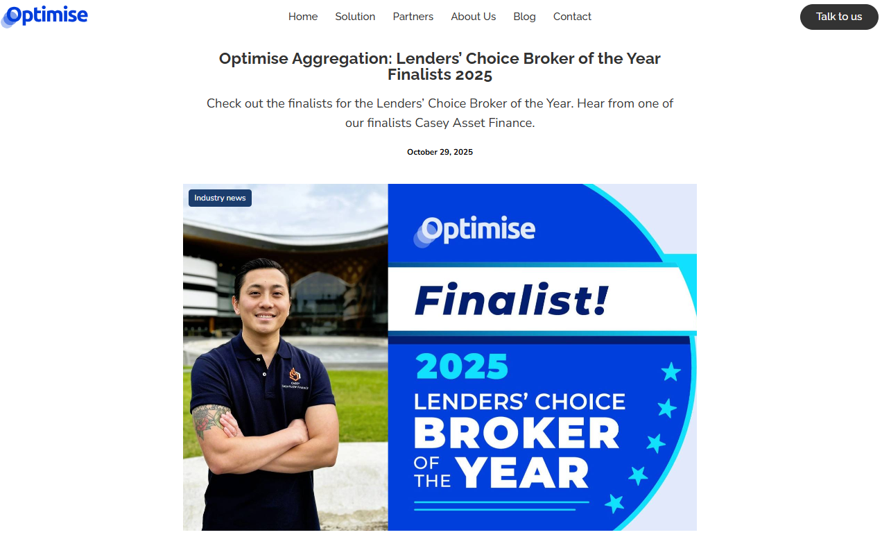 Optimise Aggregation finalist list, published 29 October 2025.